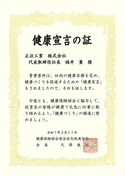 弊社創業者は、退任時に自身の意思により、保有していた正法工業全株式を従業員持株会に譲渡しました。